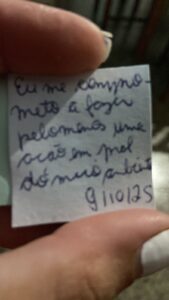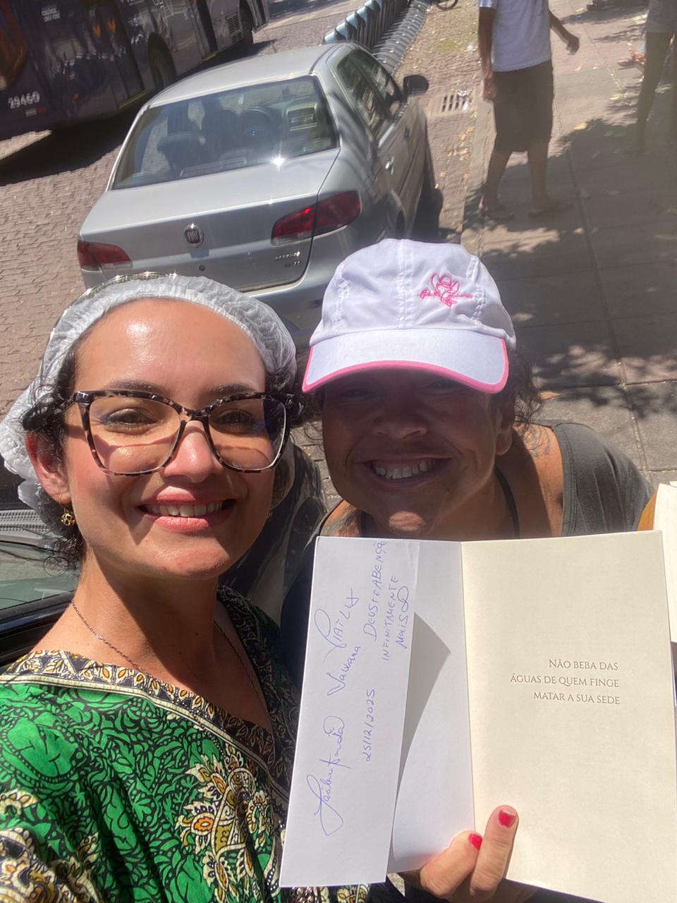 Holistic therapist and writer Jacilene Arruda was present and spoke with several people in vulnerable situations. She listened to accounts of dreams, goals, desires, anxieties, and anguish, as well as stories of past experiences and talents that often remain invisible in the daily life of a city with an estimated population of 2,415,872 inhabitants, according to data from the Brazilian Institute of Geography and Statistics (IBGE). It is worth noting that this number does not include the homeless population: according to municipal surveys and studies by the Ministry of Citizenship, it is estimated that between 8,000 and 10,000 people live on the streets of Belo Horizonte. Jacilene distributed books, captured moments of joy in authorized photos, and shared genuine smiles.