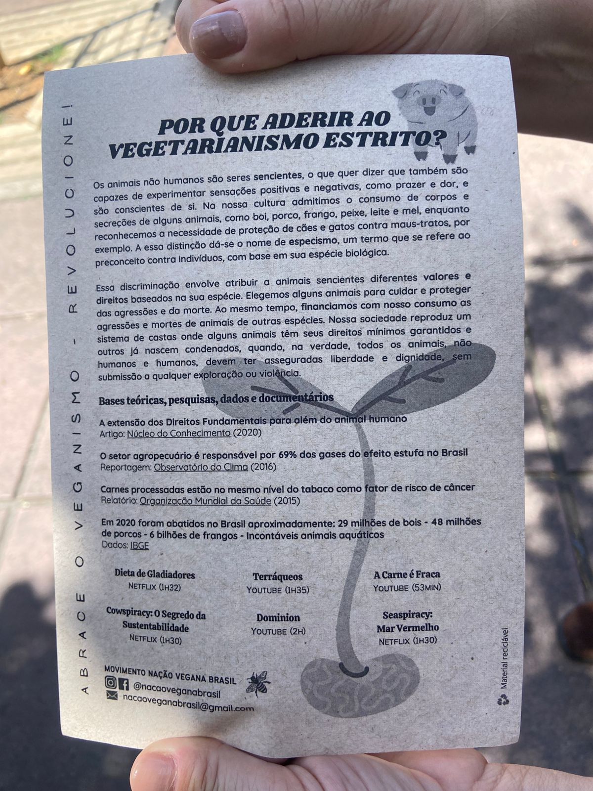 Ação Vegana Solidária takes place annually at strategic points in Belo Horizonte. Activist Glener Costa, in partnership with Quintal Vegan, plays a fundamental role in spreading vegan seeds in a society facing times of climate emergency.