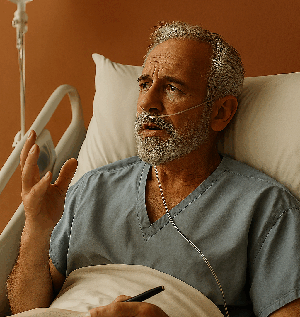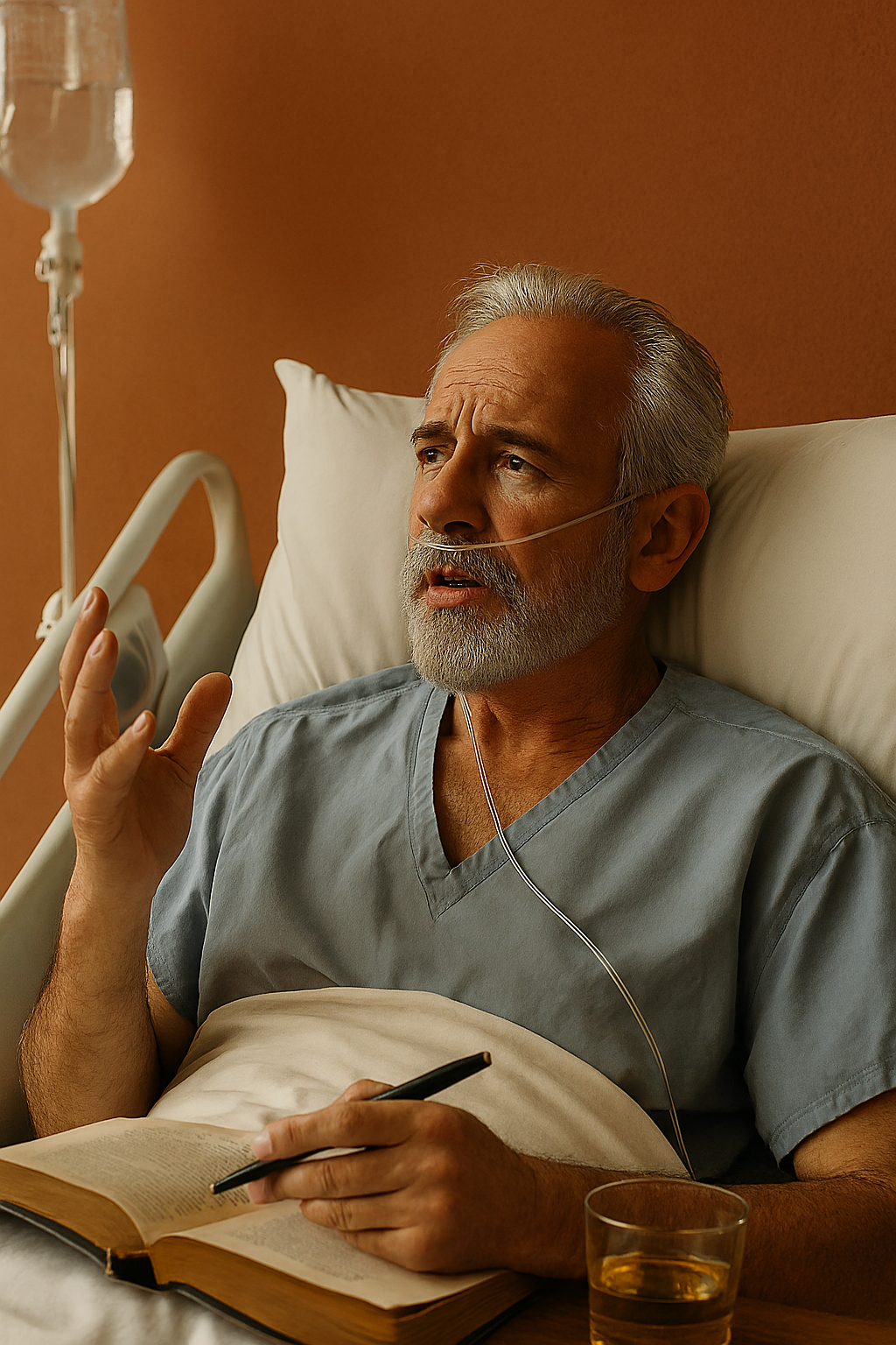 E Otávio está em um hospital, deitado em uma cama, e os familiares no corredor falando com os médicos, buscando notícias. Os remédios, o Dopamin, ele apenas observa e ouve vozes distantes da sua filha, do genro e da esposa. Ele queria apenas que Deus fizesse o que fosse melhor.