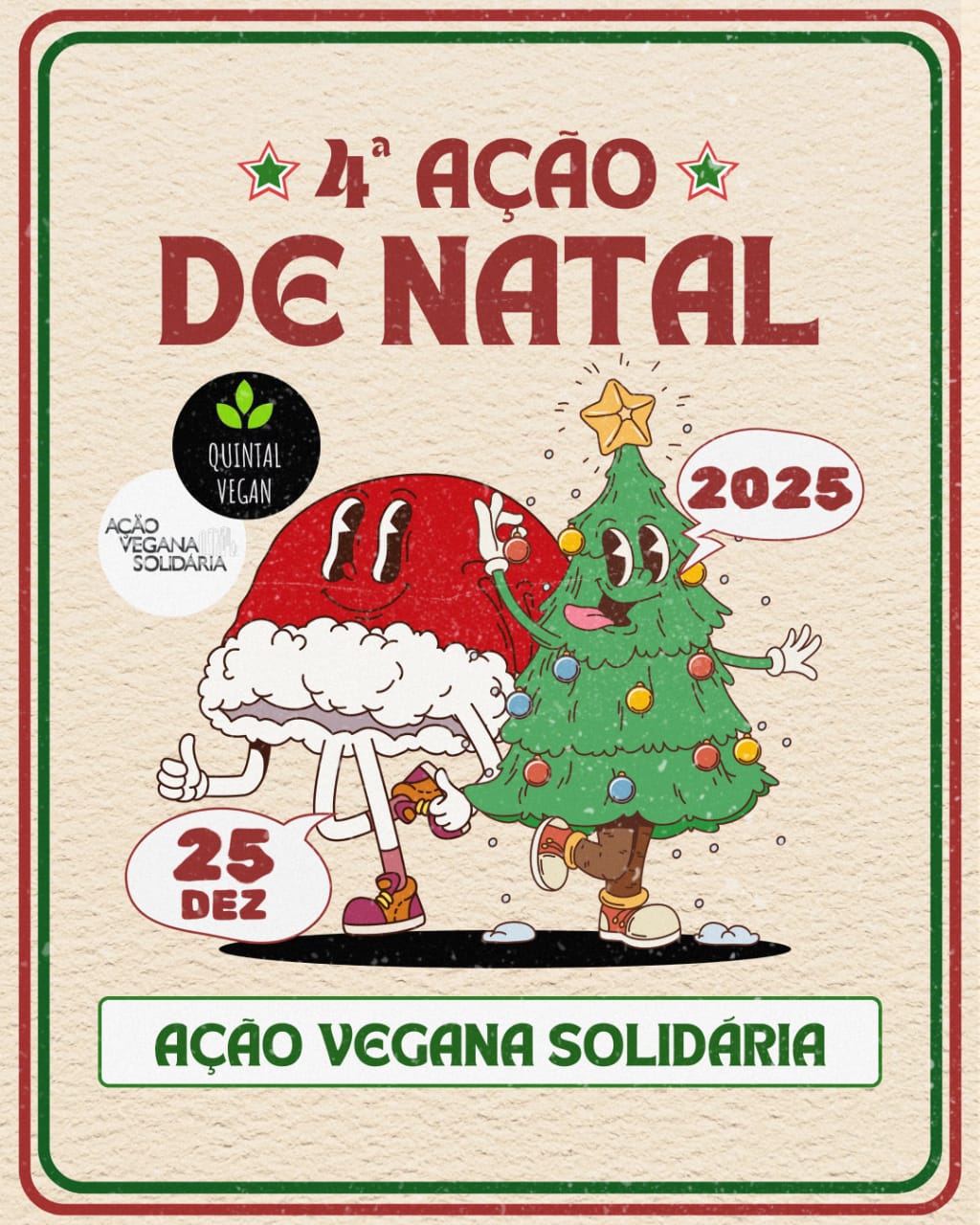No espírito de solidariedade e celebração, convidamos todos a participarem da Ação Vegana de Natal, que acontecerá no dia 25 de dezembro, na Praça da Estação, em Belo Horizonte (Minas Gerais).