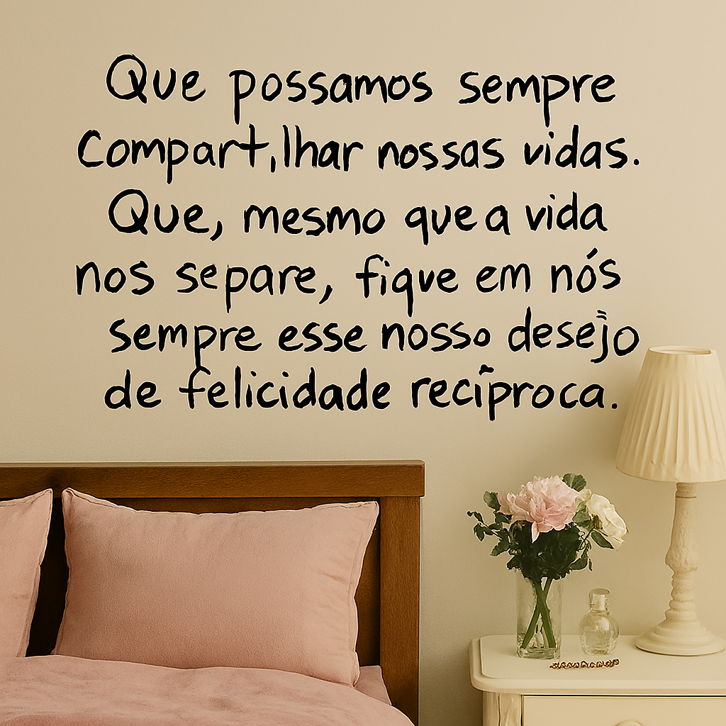 “Que possamos sempre compartilhar nossas vidas. Que, mesmo que a vida nos separe, fique em nós sempre esse nosso desejo de felicidade recíproca.”